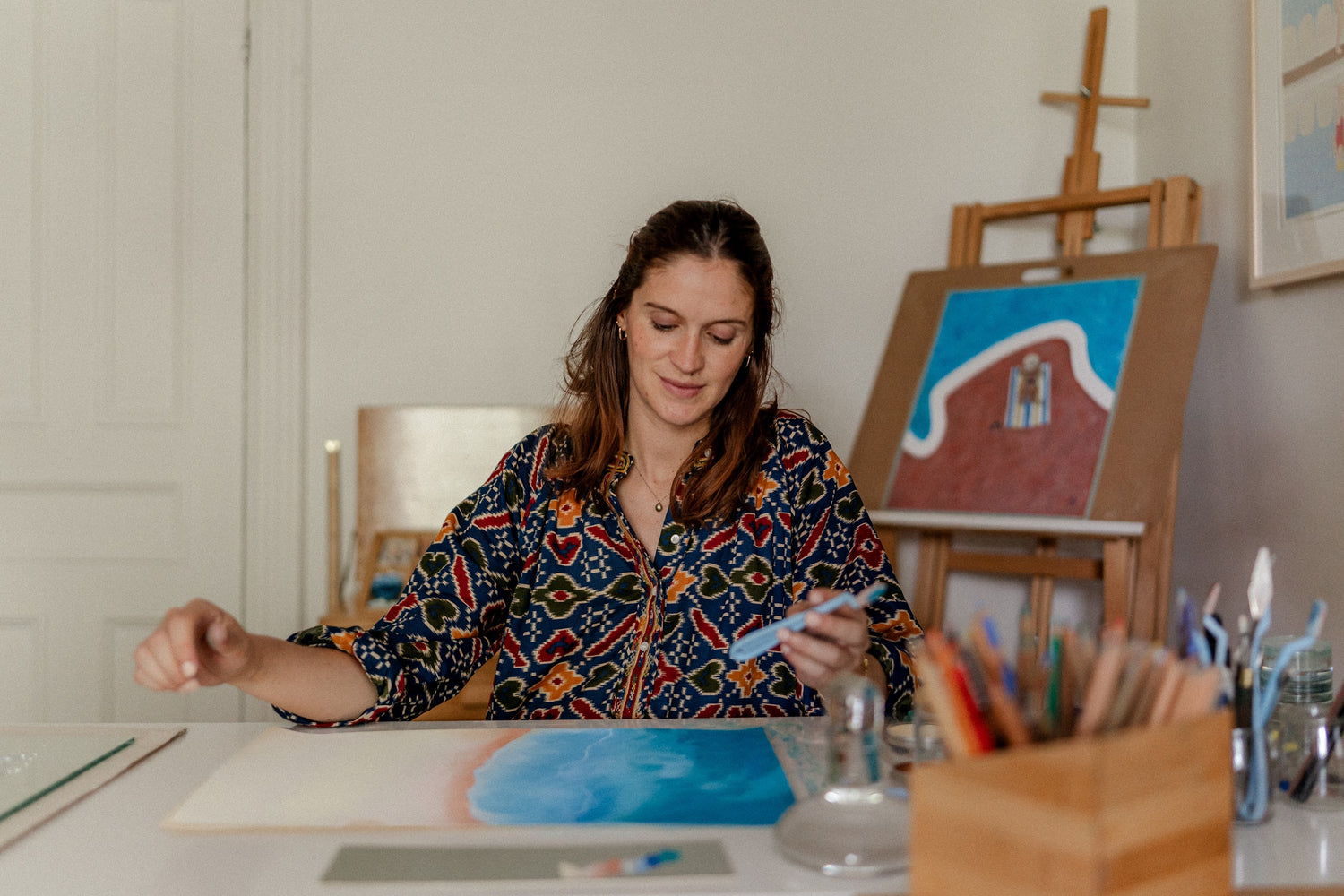 Depuis quelques années, je crée mes propres bâtons de pastel avec des pigments naturels, explorant notamment les nuances infinies du bleu, qui sont au cœur de mon travail.
